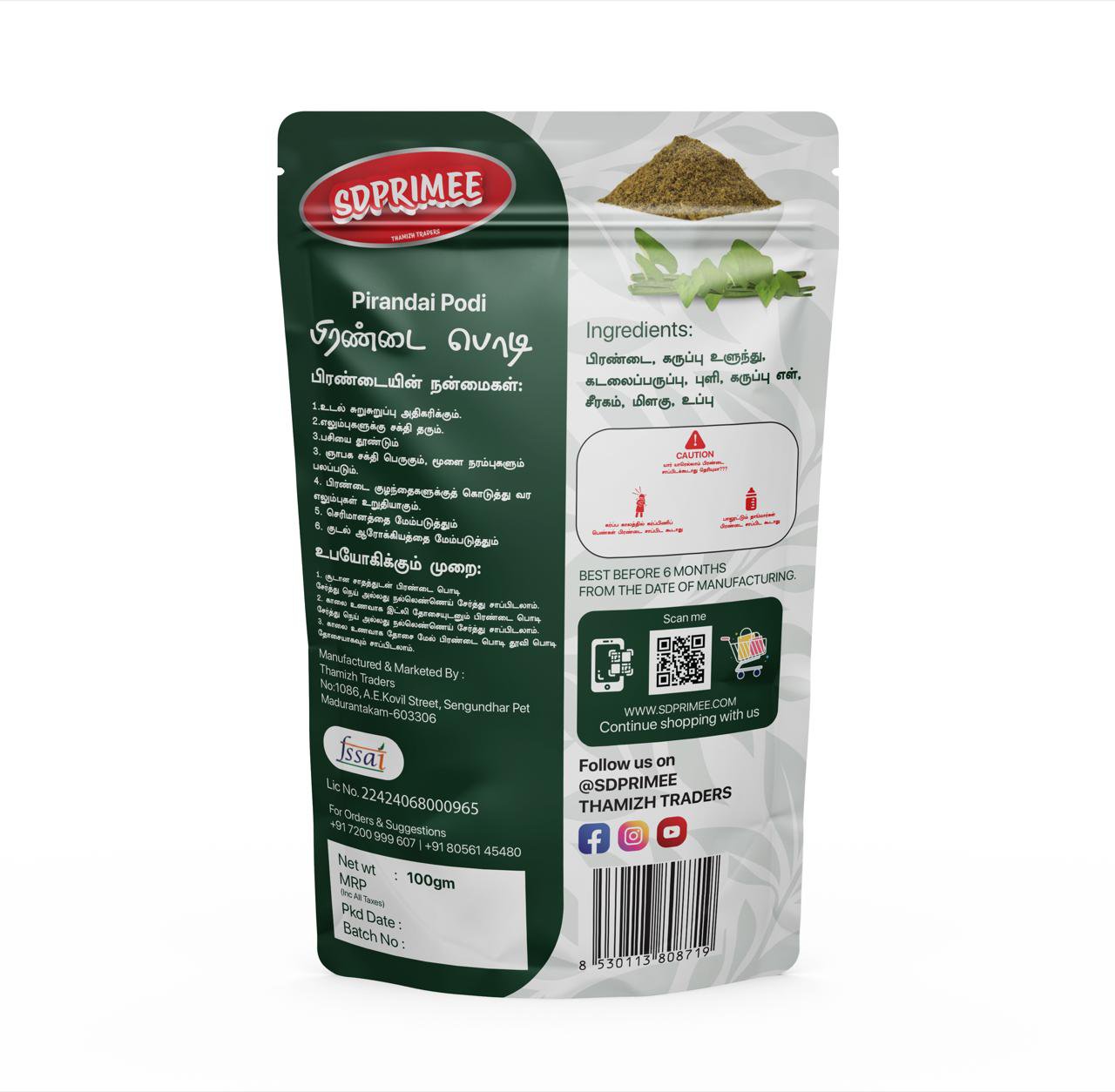 At SD Primee, purity comes first. This Pirandai Podi contains no artificial colors or preservatives. It’s made with 100% natural ingredients to ensure a healthy, chemical-free dietary supplement. Enjoy peace of mind with every spoonful.