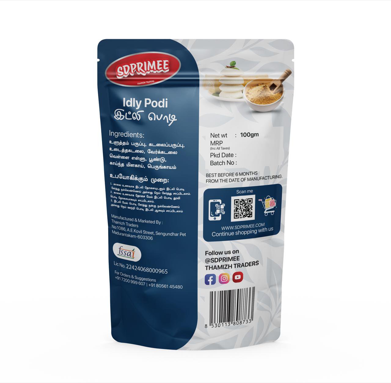 Experience the essence of Tamil breakfast traditions with SD Primee Idly Podi – a classic dry chutney powder crafted from roasted lentils, spices, and a hint of Tamil grandma’s love. Whether mixed with ghee or sesame oil, this podi turns any idli or dosa into a nostalgic, flavorful treat.